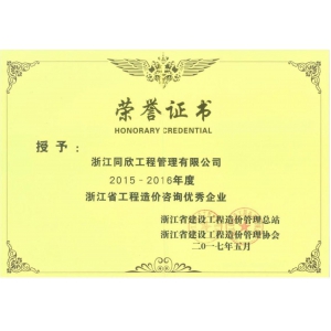 浙江省工程造價(jià)咨詢優(yōu)秀企業(yè)